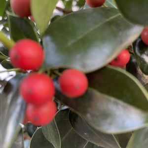 1pic…セイヨウヒイラギ 門扉横ミニ花壇赤い実を付け目立ってます 2pic...カランコエウッドデッキに置いてたのを部屋の窓辺に置くとお花が咲きだしました 3pic...ブルーウイング3回目咲いてます 4pic...干し柿2回目干してます
