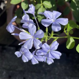 ① ルリマツリ やっと1輪目😊 昨年植えたこの鉢に、コムラサキの種が飛んで来て成長していたのを、ルリマツリだと思っていた しばらくして、ルリマツリが復活して葉っぱが違う2種類の苗が育ってることに気が付いた コムラサキをカットして数日後ルリマツリの蕾を発見、今日花を見ることが出来ました😆 ② クレロデンドルム・ブルーウイング