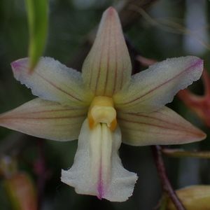 葉が大きい。バルブも太い。 でも、花小さい。花色も地味。 な地味アフィラム。 だが、それがいい😁 この地味アフィラム、普及タイプの大花、白リップ、ビビッドピンクなヤツより低地産じゃないかと思って、毎年浴室で越冬しているので、普及タイプより先に咲く。 どこまでの低温に耐えるのか不明。高芽でも出て株分け出来たら試そうかと思うんだけど、この株全然高芽出ないんだよ。普及タイプは毎年高芽出るのにね。 デンドロビウム アフィラム Dendrobium aphyllum (Roxb.) C.E.C.Fisch. (1928) 他にも色々咲きまくってるんだけど載せられるかな~、この時期毎年忙しくて載せ損なうのがいっぱいになるんだよね~😓