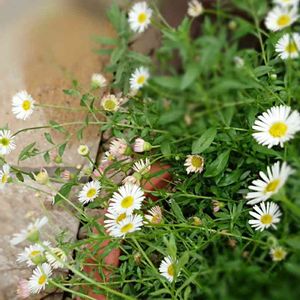 うちの庭で雑草の次に元気なお花🌼エリゲロン✨ 庭のいたる所で咲いてます😆 鉢植えの足元からひょっこり 庭の片隅にはズラズラ〜 あっちこっちで咲いてますが ここは1番まとまって咲いてるから 可愛く見えてきて不思議~(´∀`*) 10年以上前にたった1株お迎えした苗が 今はこんなふうにあちこちに🌼 キク科のお花、恐るべし!!ですね😅