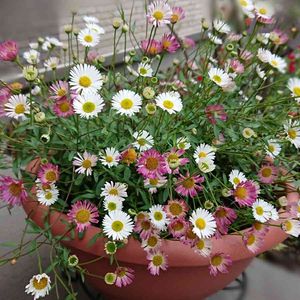去年の8月に草むしりをしていて、庭の隅で咲いているのを見つけたエリゲロン🌸 鉢植えにして育てたら蕾がいっぱいになり、咲き始めてくれました💕 最初雑草と間違えてたので、捨てなくてよかった😅