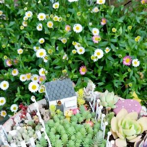 Annabelle*さん宅から 貰ってきた、エリゲロンが 今凄いです〜😃💞 白いお花の中の、ピンクも可愛いね〜😋❣️ 箱庭も、じゅんじゅん♡さんの所と一緒で、うちは セダムで道が隠れちゃいました〜😅 でも、もりもり元気なのが 嬉しい〜♡(´˘`๑)