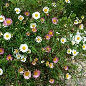 去年の春 たった 2株庭の片隅に 植えただけなのに 今年は 零れ種から どんどん広がり 可愛いい お花畑に💕 春から夏まで ずっと咲き続けてくれる エリゲロンの花🌸 白やピンクに色を変え こんなに愛らしいのに 雑草のような強い花なんですヽ(*´∀`)