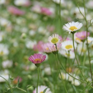 エリゲロン (ペラペラヨメナ 源平小菊)いろんな名前を持つ花です かなり丈夫な花だと思います 芝桜エリアに咲いてるなと思っていたら芝桜を駆逐しました 植物の世界も弱肉強食なんですね?