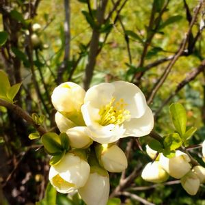 白いボケの花を見つけ思わず📷 つぼみも丸くてとても可愛い🌼