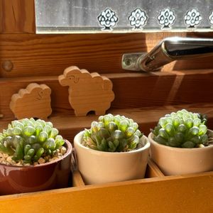 ハオルチアのトゥルンカータ✨ 午前中の日差しが1時間も当たらない(と思われる)窓辺ですが機嫌よさそうです🥰 うちにあるハオルチアの中ではかなりの古参株たちです…☺️ 左端の茶色の鉢の株が親株で白い鉢2つは子株が育ちました✨ ホコリが気になりますが(笑🤣)とてもきれいです😍