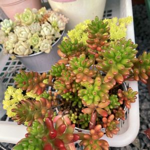 🏷️木曜日は桃色 🏷️2のつく日は斑入りの日 🏷️斑入り見つけ隊♪ に参加させて頂きます☺️💕 ピンクがかわいいセダム トリカラー🩷 ホームセンターで買ってきたのですが…よく見ると真ん中になんか違う子が…👀✨アナタハダレ⁉️ 売り場で横に並んでいた株から葉が落ちていたのかな⁉️ このまま育ててみようと思います☺️💕 8/28追記😂 8/27(水)に曜日を間違えて🏷️木曜日は桃色をつけて投稿しました…スミマセン🙇♀️💦