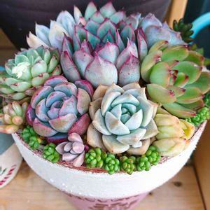 センペルさんメインの 寄せ植えを作りました えっ❓️ って思うようなのも入ってますが 気にしない(゚ε゚) 自分が楽しければいいんです