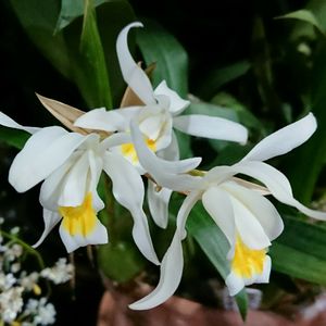 セロジネ インターメディア ラン科 セロジネ属 ふんわり垂れるステムに白い花 ちゃんとこっち向いて可愛い💕 香りは? 全部咲いたらゲ🙀っていうか 好みじゃないクッサ〜ァ💦