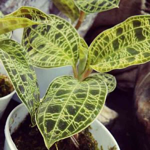 待ってたよー😀ジュエルオーキッド💕💕💕 キラキラ✨✨綺麗💕💕 葉っぱを楽しむ蘭の仲間です。 綺麗だに!! 不思議。 ルーペで葉脈を見たい💕 ということで、私もお買上げ〜😁😁😁😁
