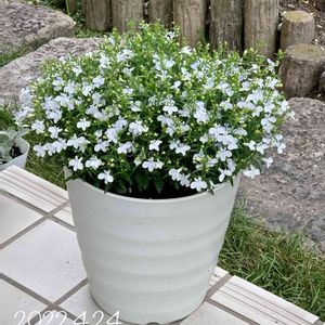 アズーロコンパクト(ロベリア)💐 最初、青い花が咲いたから買い間違えたか?ラベルが違うのかと思ったけどやっぱりホワイトでした😍 モリモリしてきましたよ🌸