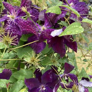 ①昨日のお花 クレマチス💜 畑にて 朝の☔️で濡れてました ②桔梗も濡れてました ③突然 また☔️が降ってきて慌てて主な物だけ収穫しました 採り忘れの黒ウリやきゅうり オクラがデカくなりすぎてた😳 それでもいろいろを友人2軒に分ける事ができました ④小玉スイカも採りました 今回は🟡でした さっぱりした甘味でした😋