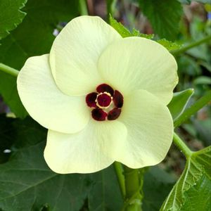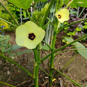 おはようございます 今日のお花 オクラ 家庭菜園のマルオクラです。 たくさん収穫🧺 美味しく頂いています😁