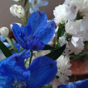 こんにちはm(__)mいつも丁寧に対応して下さるチーム.ブルーの皆様まだまだ下手で嫌になる自分にも優しく接して下りMr.マーさんはじめ、有り難うございますm(__)m青い花マニア4周年🏷️㊗️花屋さんで😊この日はフリフリビオラさん😊次ね😉と挨拶して帰りましたスキップ🎶