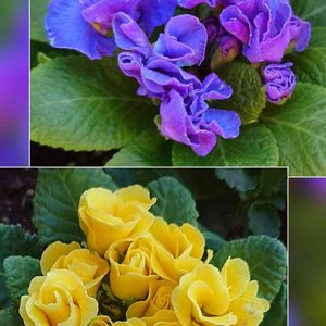 💠今日のお花プリムラ・ジュリアン💠 バラ咲きの青紫色と黄色のプリムラ・ジュリアン、綺麗です✨✨ 🏷青い花で新年会2022 🏷幸せの黄色いお花