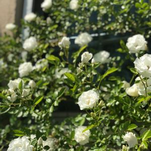 窓辺に誘引したつるサマースノー🌹 去年は数個しか咲かなかったけど、今年はいっぱい蕾ついてる〜❣️✨