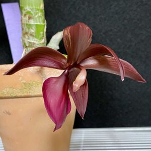 今朝の事故😭 花が終わると無意識のうちに油断するのでしょうか。 折れたのがバックだったのが せめてもの救い そして断面の瑞々しさ まるでキュウリみたいと感動すらしています 2020年の世界らん展でお迎えした こちら。 お迎え翌日にバルブ折ってます。 そういう運命にあるのかしら。
