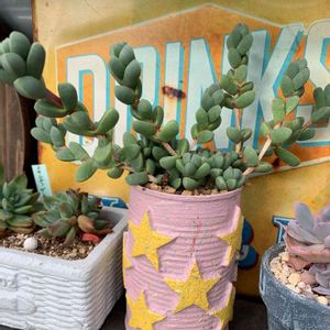 こんにちは😃 最低20℃•最高32℃☀️のち☁️予報。 多肉スペースは業務用扇風機を使用して 35℃🥵 今日はお休みなので少し植え替えを始めようと思い、土を配合しようとかがんだら 今までに見た事のないデカさの芋虫?に 遭遇し心が折れました😂 甥っ子が川へポイッとしてくれましたが 気持ち的に無理😭 そうだ‼︎トレーの小苗を鉢上げしよう‼️ 作業開始20分で汗だくgive up😱💦 せっかくのお休み…暑過ぎて何も出来ないです🤣 雨晒しのピンキーが暴れてました💣💥 明日からまた連勤なのでゆっくりしまーす🎶
