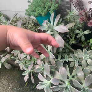 おはようございます😊 最低20℃•最高23℃☔️のち☁️ 昨日のお休みは孫が来ました😆🎶 外にお散歩へ出ると雨晒しゾーンの 朧月で止まり葉をモギモギ💦 その後はパクッとお口へ🤣 小さくて可愛い手❤️ 葉挿しいっぱい増えたけど許せちゃう😆💕 いつか一緒に、大人しく多肉を眺められる日が来ると嬉しい‼︎