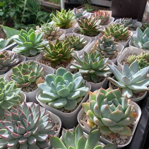 こんにちは😃 最低17℃•最高30℃☀️予報。 多肉スペースは遮光下で34℃🥵 今日はお休み🎶 明日から勤務続くので、午前中は食材の 買い出しに行き 午後から成長した葉挿しっ子をビニールポットへ植え替えしました👍✨ チマチマ作業、地味に好きなんです😅 蚊に刺されるのは嫌なので暑いうちに やり終えました😁👌 暑いけど、少しずつ秋めいて来ているのを 感じます😊 あとちょっと‼️多肉たち頑張ってくれ〜♡