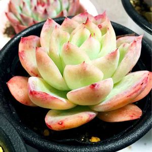 おはようございます。 エケベリア ルミナスちゃん💕 表記は Ruminus ネットでは Luminous 下の方が 光る 輝く なのでイメージが合うと思うんだけど??? どっちなん? 覆輪風の葉の透け感がぴったりの美人さん✨ 上と左下が実物に近いです。 右下は日差しでなりました。 みんな無加工ではあります。