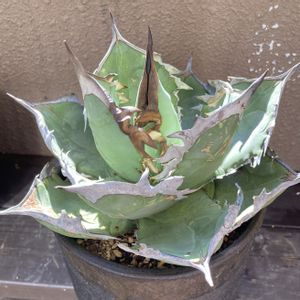 Agave Oaxaca oteroi🔥 アガベ オアハカ オテロイ🔥 縁があり格安で譲ってもらいました🌞もちろんバッチバチの発根済💪ワイルドですね~🏜️鋸歯のバンド幅がまるでSADみたいです🥹すでに6号鉢なんでデカいんだけど作り直して下さいと託されたのでじっくりいきたい☀