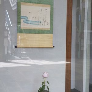 芍薬が 入ってた🎶 象耳の唐物花入 お軸は 読めない💦 これも 宿題