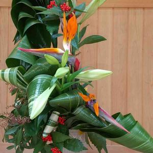 お正月のお花❕ 地元の神社に奉納します🎵 アレンジメントの先生他 11名のお花が展示されます🍥🌿 皆様来年も宜しくお願いします🙇⤵️