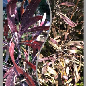 寄せ植えにしていたドドナエア🌿🍁 ⬅️綺麗な葉で元気だから喜んでいたけれど、 ➡️寒風でカラカラ チリチリに😨…枯れてしまうのだろうか??