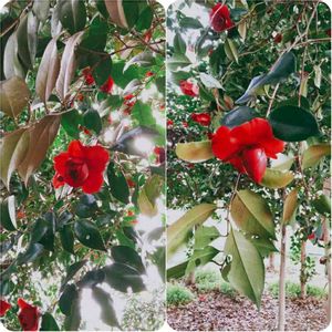🟡🟠🔴🟢🔵 ツバキ ヤブツバキ系 1️⃣崑崙黒(コンロンコク) 2️⃣王照君(オウショウクン) 3️⃣羽衣(ハゴロモ) 📸2024.03.28