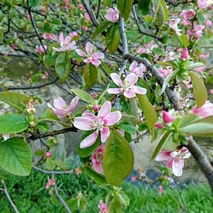 もっと近づきたいけれど 思い切り手を伸ばし…これが限界… 薄ピンク色が可愛い…花梨の花✨