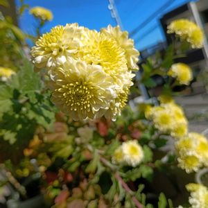 こんばんは〜🌠 今日も一日お疲れ様でした〜(*ᴗˬᴗ)⁾⁾ 今朝のベランダ🎶 青空がとってもきれいでした〜ദി ᷇ᵕ ᷆ )💙 ピンポンマム沢山咲いてきましたがやっぱりベランダ中からは撮れません😅💦 周りの鉢を皆移動させて何とか撮れました(≧∇≦)📸 本当の色は中がグリーンなのですが皆イエロー💛💛💛💛💛 ビタミンカラーもいいかなとプラス思考で楽しみます〜 終わりかけには又色変化💗最後まで楽しみです〜 (*´꒳`*).。.:*♡ •*¨*•.¸¸☆*・゚