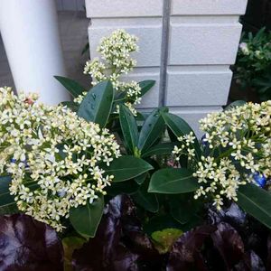 1月22日の寄せ植えにしたシキミアが満開になりました。