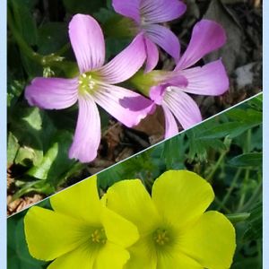 今日のお花 カタバミ 1 ムラサキカタバミ 2 オオキバナカタバミ 3ミヤマカタバミ 4、5 カタバミ