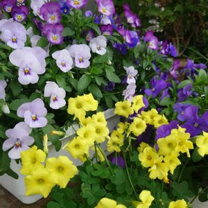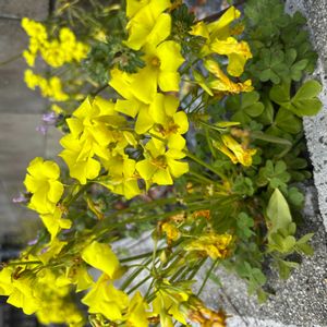 ベランダの「オオキバナカタバミ」と「ビオラ」🌿💛💜 明るいビタミンカラーと反対色の紫色が良く似合います🤗💕 🏷月曜日にビタミンカラー 🏷元気な月曜日❗ 🏷月曜日は元気色の花 🏷元気いっぱいビタミンカラー に参加させていただきます🙇