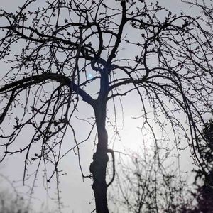 開花を待つ枝垂れ桜 …今朝日を浴びて 🏷シルエット