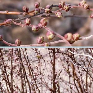 今日は桃の節句…🎎 桃の花ならぬ桃の実のような ぷっくりピンクの ピンク雪柳の"混芽”です。 実は今朝花友さんから この言葉を教えて頂きました。 調べて下さった松江の花図鑑 によると 芽鱗(ガリン 鱗芽とも)は2枚が合着して(!!)中の葉芽花芽を守っているのだそうです。 …これが私にはよく分かって いませんでした。 朝それを読ませて頂いてから この芽鱗を意識して 写してみました。 この写真から分かるでしょうか? 芽鱗は開いて 芽キャベツ状態からは 進んだようですね。 このあと今朝の白花も 上げますね。 実は昨日の纏めた 写真もありますので それはそのあとで…。 どなたにも身近な雪柳 皆さんも 是非写してみて下さいね。 私も雪柳観察隊続けます…。 natsumenobabaさん お陰様です… 有難うございました。