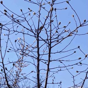 白の姫辛夷、毎日、咲かないかな〜と見上げています。あれれーっ、咲きかけてもう食べられちゃった〜?!犯人はヒヨだな、ヒヨドリ!!🧐😠😖😭