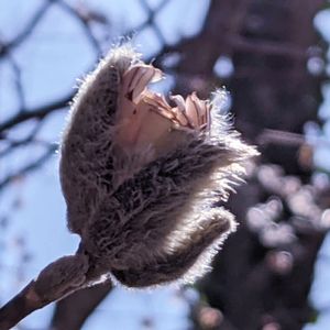 庭の檀香梅の今日の蕾です。モフモフから大分脱皮?して来ましたよ。☺️