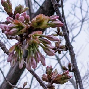 もう大分咲いている皆さんのきれいなお写真が上がって来ていますね。家の利休梅はまだ蕾、ようやく白いものが見えてきました。みんな天に向かっています。