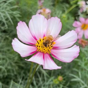 コスモスに蜜蜂🐝🎶 黄花コスモス畑🐥 🏷️毎月15日はインコの日