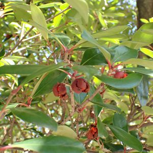 ★タブノキ(椨の木)★ クスノキ科の常緑樹 花期 :3月下旬~4月 結実期:5月下旬~6月 別名:イヌグス(犬楠) 成長が早く、大木が多い。雌雄同株、一つの同じ花が雌花から雄花に変わる。花後はグリーンピースのような実ができる。 flower quotation https://mirusiru.jp/nature/flower/tabunoki お花を見たかったが、行くのが遅かった…😆 その代わりに見事に赤く染まった柄と、未熟な緑色の果実が相まって麗しい姿が見れました♫ 前日が荒れた天気だったせいか、多くが落果していました。残念…💧 2025.5.18 浜離宮恩賜庭園にて📱