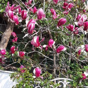 昨日見たサラサモクレン 満開です。 モクレンの花に薄いピンクが入ってます。10メートル以上あります。