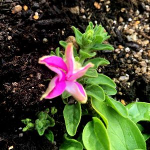 サフィニアが咲き始めた✦ฺ まだまだ小さな株だけど、蕾もたくさん! これからが楽しみ😄