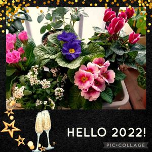 年末に迎えたプリムラジュリアン達と今年に迎えた子達のなんちゃって寄植えです(笑) プラポットのまま並べただけですけどね~🤭