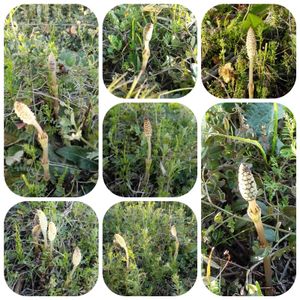 つくしの群生 3日前、1本の土筆を投稿した。 すぐ傍だよ。 あの日にも、アタマを出していたのかな? 公道脇の植え込み。