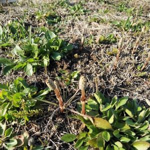 今年初のつくしよーく見たらもろこし村のスナック菓子見たいです♪🌱 ピーピー豆、、ど忘れしちゃいました(^◇^;)💦 その隣には小さい豆科の、、。💦