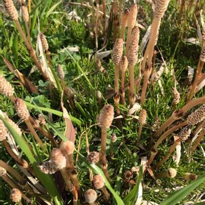 水辺の近くにスギナだらけでツクシがぜんぜん見当たらない場所が😳❓ ツクシはスギナの胞子茎🌱必ず出るとは限らないのだそうです。 だけど一本だけ緑色のツクシ君発見‼️👀🌱 ツクシとスギナの関係も奥深そうですね😅💦