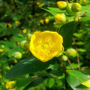 今日のお花🟡金糸梅🟡 先日 山で見かけた キンシバイ 薄暗い山林の中 この花のある場所だけ 金色の星を撒いたような🌟 ̖́- ☆。.:*・゜ 宇宙を見るような💫空間でした✩.*˚