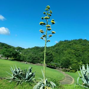 ・:*ೄ‧͙·* ・:竜舌蘭(リュウゼツラン)‧͙·* ・:*ೄ‧͙ 昨日の朝刊に 「50年に一度の奇跡」と 開花の記事がありました。 その名は知っていましたが 実物を見るのは初めてです👀✨ 記事によると6月初旬から茎が伸びて 高さが5mほどに達し 7月に入って黄色の花を 咲かせ始めたのだそうです。 メキシコ🇲🇽の強いお酒🥃 テキーラの原料なのだとか。 この花は一度咲くと 枯死してしまうのだそうです😢 多くの人が写真に収めておりました🌿📷